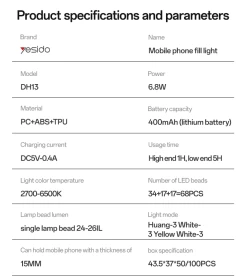 • Lighting Modes: 3 Warm, 3 Cool, 3 Mixed