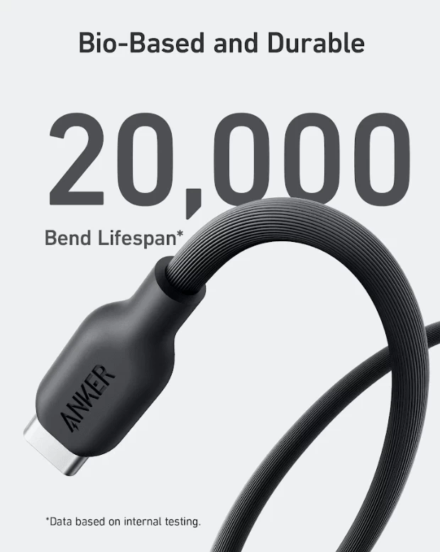كابل أنكر 544 يو إس بي-سي إلى يو إس بي-سي (مصنع من مواد حيوية) بقدرة 140 واط (بطول 0.9 متر / 3 أقدام) - أسود
