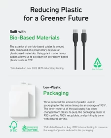 • يتكون الجزء الخارجي من الكابلات القائمة على أساس حيوي بنسبة 40 ٪ تقريبًا من خليط خاص من المواد النباتية.