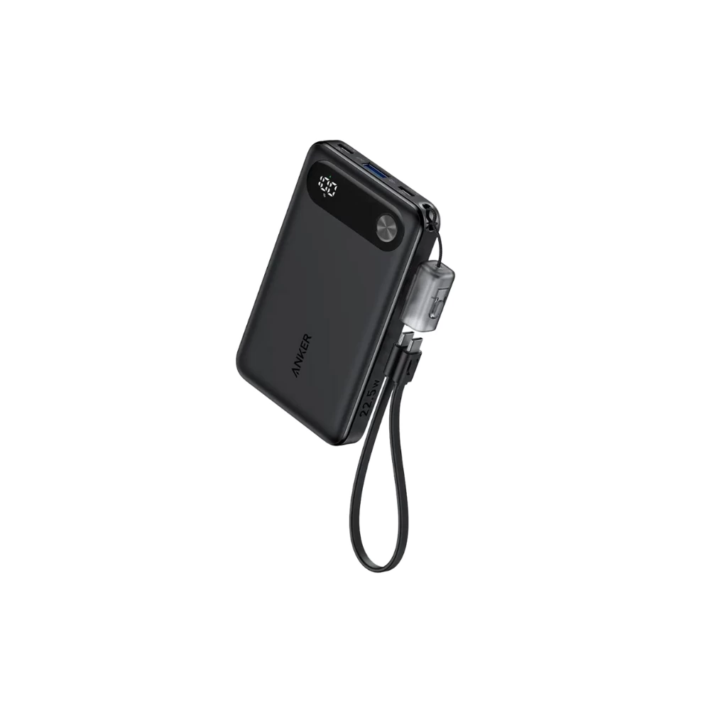 Anker Power Bank 10000mAh Portable with Built-in USB-C Cable, 22.5W Max Backup Battery, Fast Charging, LED Display.